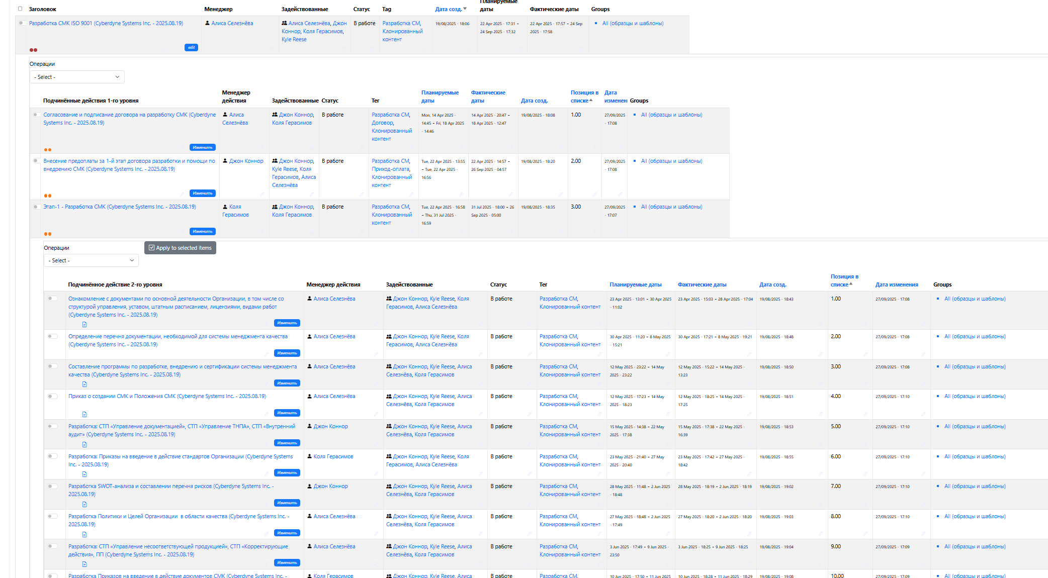 Работа с проектами и задачами: Группа служит основой для создания проектов, операционных процессов и задач. Здесь можно визуализировать работу в таблицах, сетках или календарях, ставить сроки, отслеживать выполнение и клонировать элементы для повторного использования