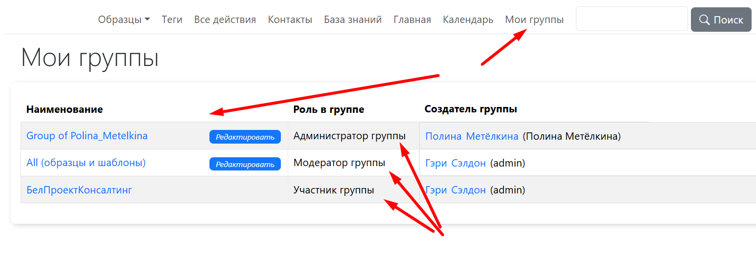 Иерархическая структура: Группы можно подчинять друг другу, формируя многоуровневые иерархии взаимоподчиненных групп, что идеально для сложных организационных структур (например, отделы внутри компании или проекты внутри отделов)